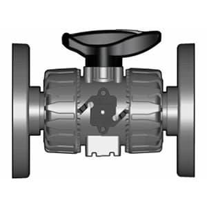 2-vägs kulventil i PP-H, utvecklad för att klara de strängaste behoven vid industriella applikationer. Flänsanslutning. PN10. Tätning i EPDM eller FPM. Utrustad med DUAL BLOCK® som förhindrar att överfallsmuttrar lossnar även under extrema driftsförhållanden. Fasta säten, en sida av ventilen är möjlig att demontera under fullt tryck. Ergonomiskt handtag utrustat med avtagbart verktyg för att justera kulsätet....